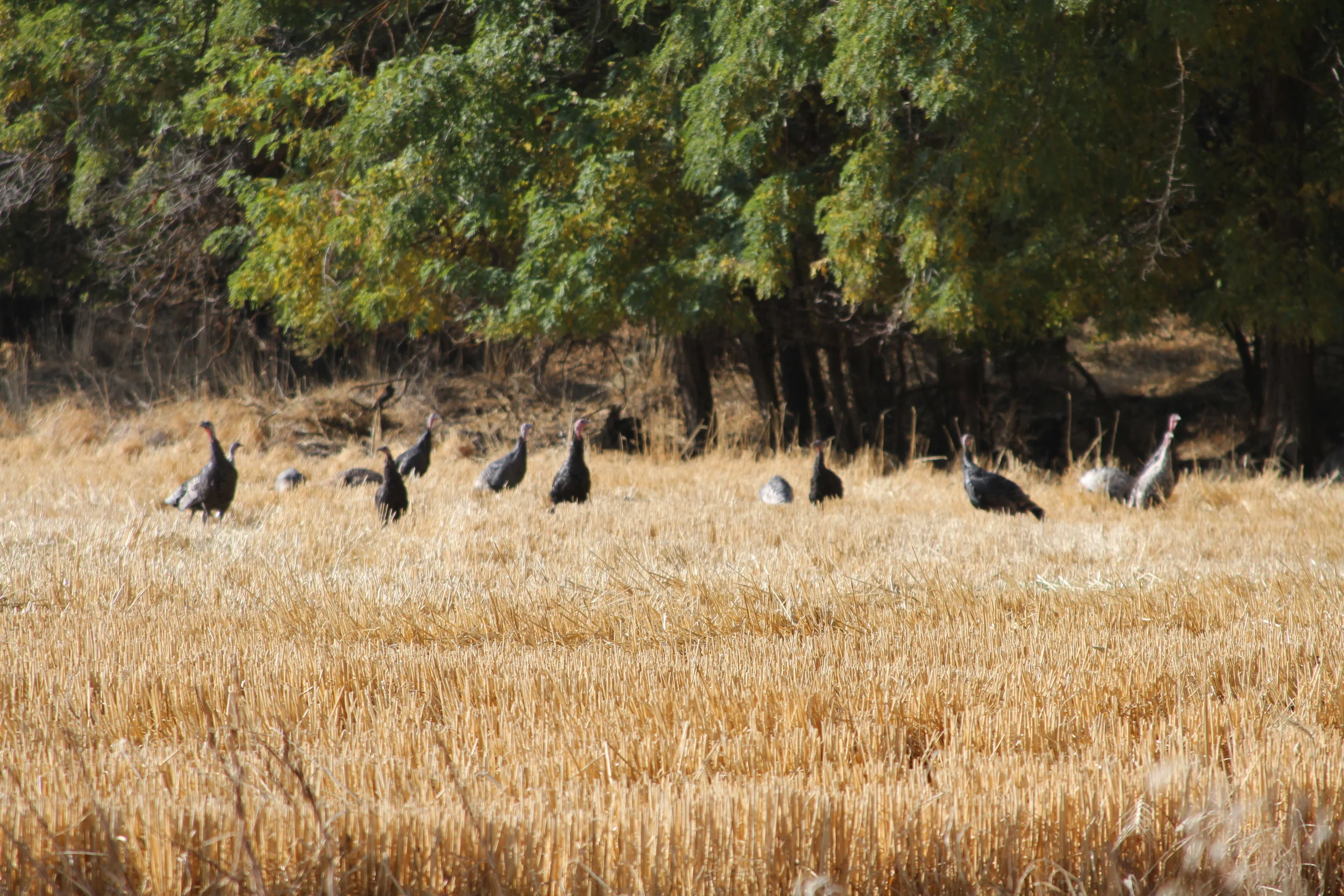 A lot of turkeys, making some noise, near Wasco, Oregon