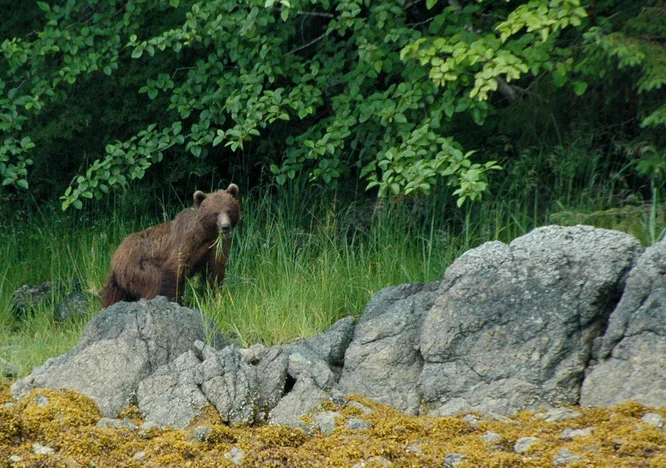 This photo is from Scott Harris during a No Limits kayak expedition in Sitka, Alaska. I was capturing video at this point. We were in our kayaks watching this young brown bear for many minutes. Video is in my film “Alaskan Waters” (film section).