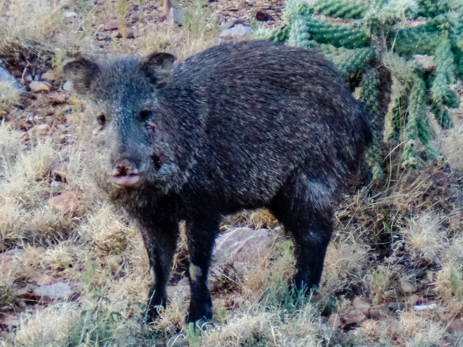 While the winter season in Southern Arizona is a quiet time for Javelina sightings, this year has been exceptional. All seen during my runs through the desert, I have seen many of these interesting animals. This was one of the three that I saw a few days ago. He was walking toward me to check out the human in Reeboks.