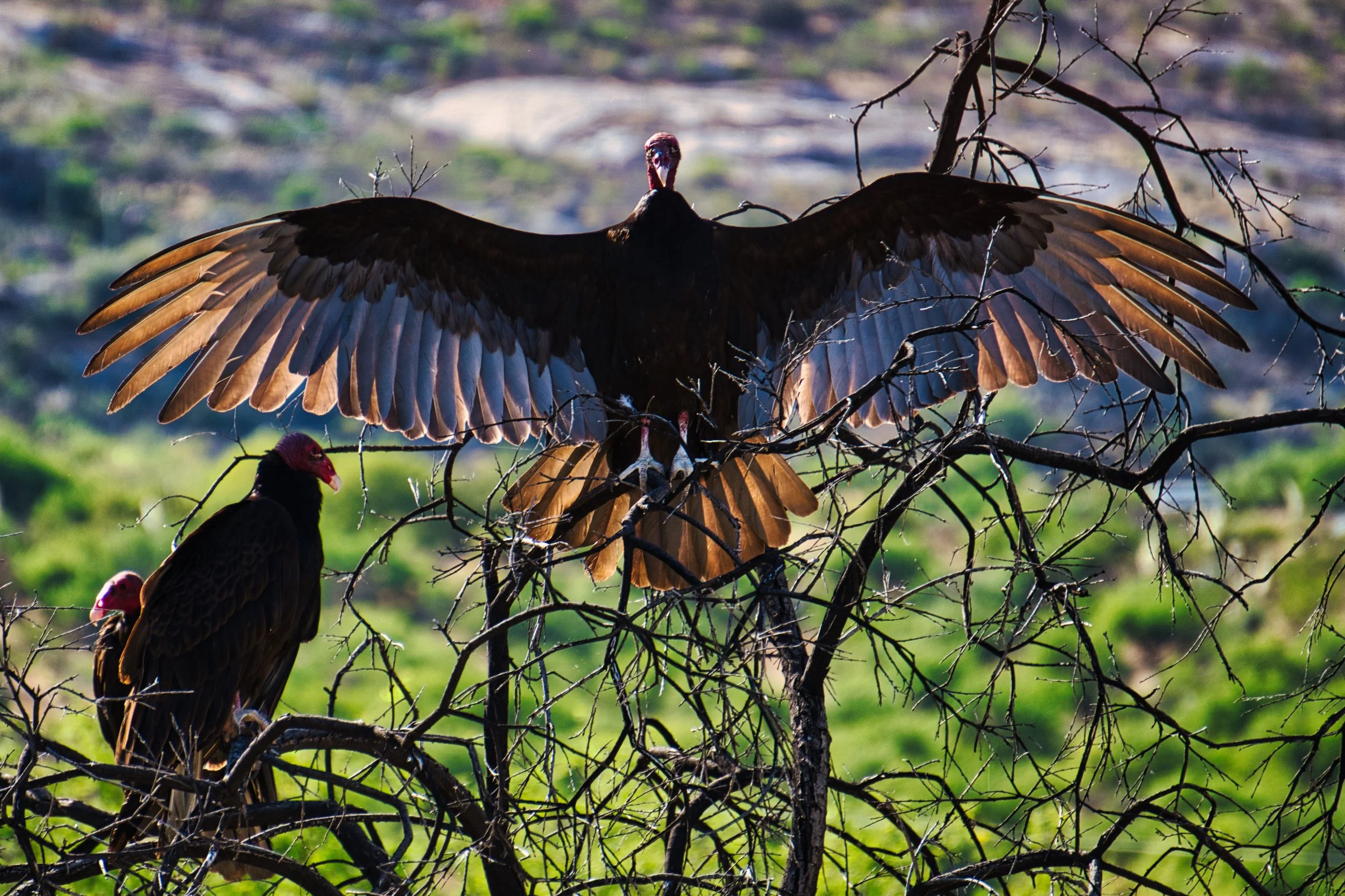 While the sun bakes the desert this June, I decide to go for a hike with my Sony along for the ride. I was not expecting to see anything so I was surprised to see a dozen Turkey Vultures hanging out by the Edwin Road bridge. This vulture is in the heraltic pose. While the vultures remain mum on their poses, there are three possible reasons they strike the pose. 1. Dry their feathers (not really necessary in this photo). 2. Ameliorate the thermal gradient between themselves and their environment. 3. So the sun can warm them. Wingspan is about 8 feet 9 inches and they weigh about 27 pounds.